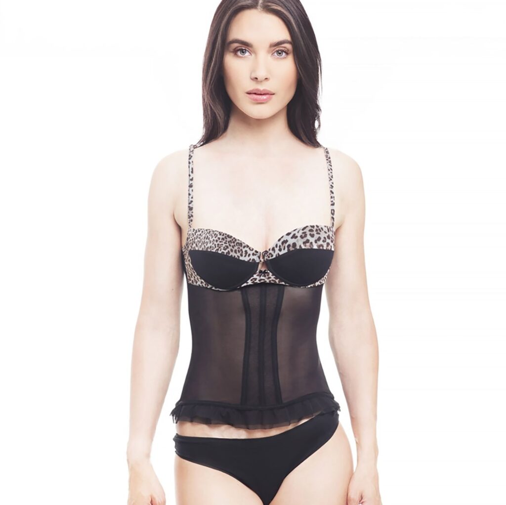Seductive elegance and animalier soul. This bustier by Cotton Club redefines the concept of the modelling bustier, combining the comfort of a stretch fabric with the boldness of leopard print detailing. Equipped with padded underwired cups and adjustable straps, it is the ideal garment for a street-chic look with character, perfect both as precious lingerie and as an exclusive undergarment.