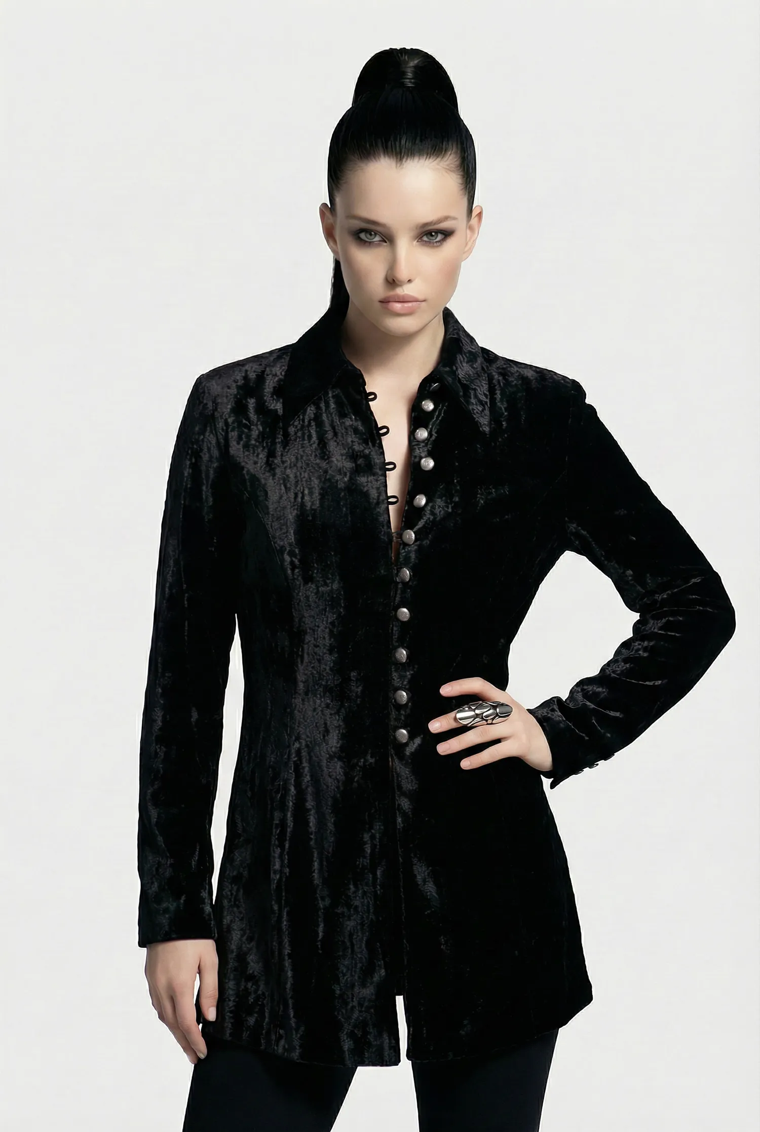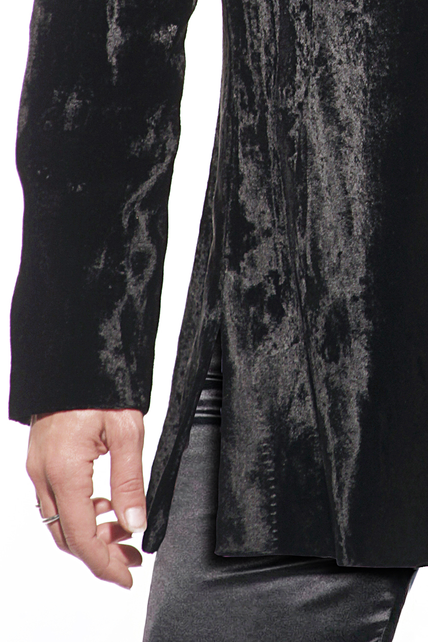 The John Richmond long jacket represents the perfect balance between rock provocation and excellent tailoring. Designed for those who desire a contemporary and decisive aesthetic, this creation is made of 100% viscose with an exclusive treatment that gives an extremely luminous velvet effect. Wearing a John Richmond long jacket means choosing a garment that does not go unnoticed, capable of transforming even the simplest outfit into a style statement.