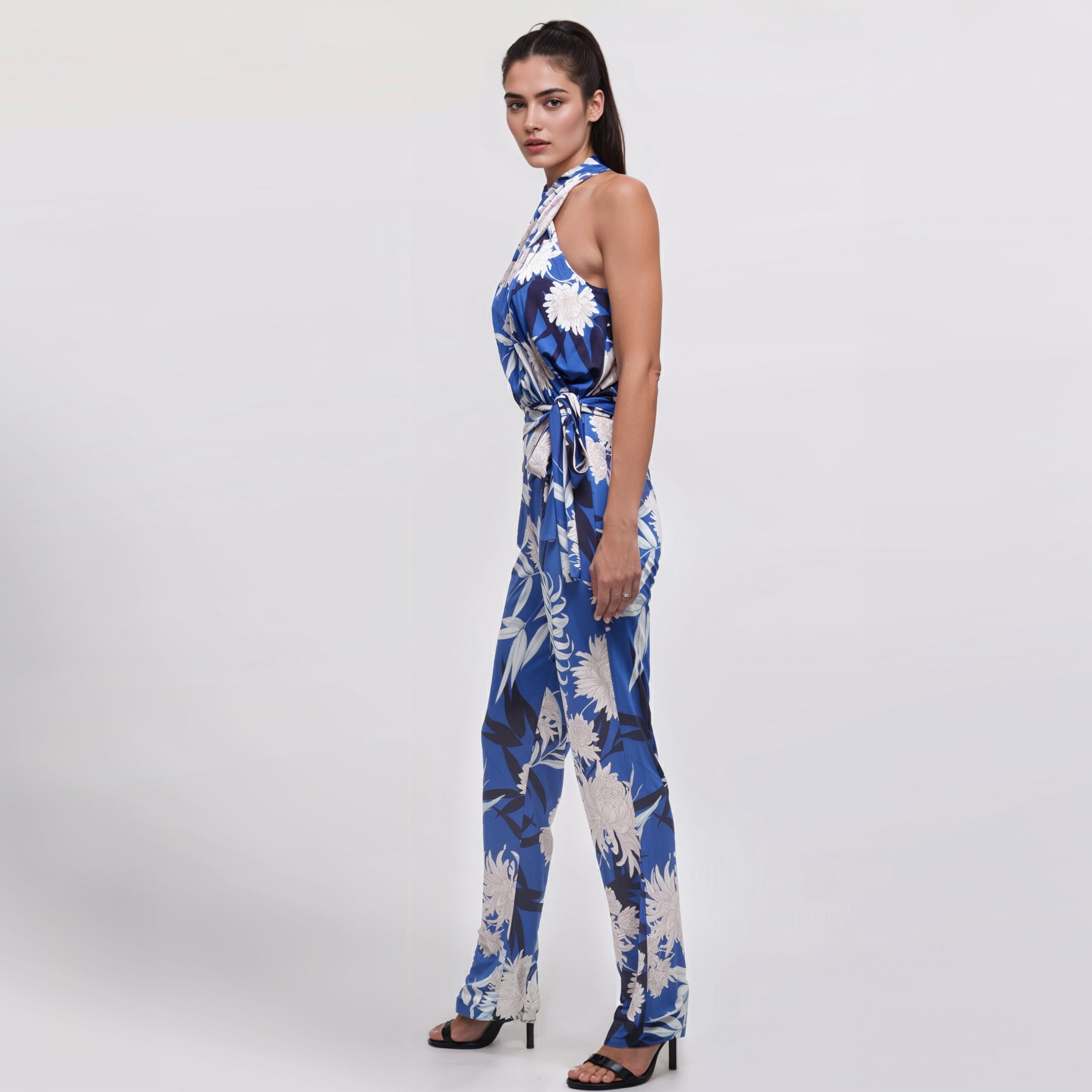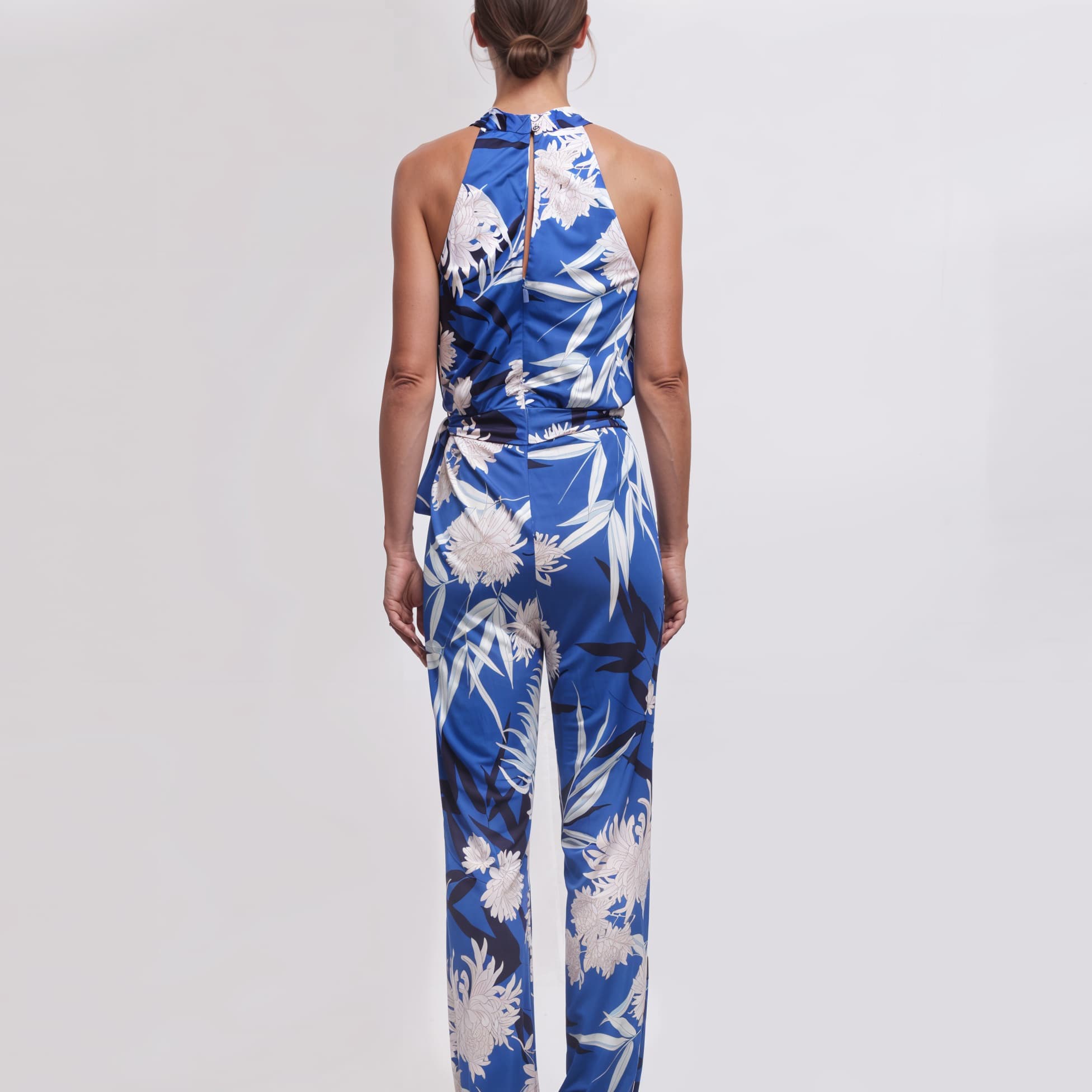 Every element of this jumpsuit is designed to offer an impeccable fit. It is fastened with delicate buttons at the back of the neck and a practical invisible back zip. The 100% viscose shell fabric ensures freshness, while the nylon and spandex lining provides the right amount of support.