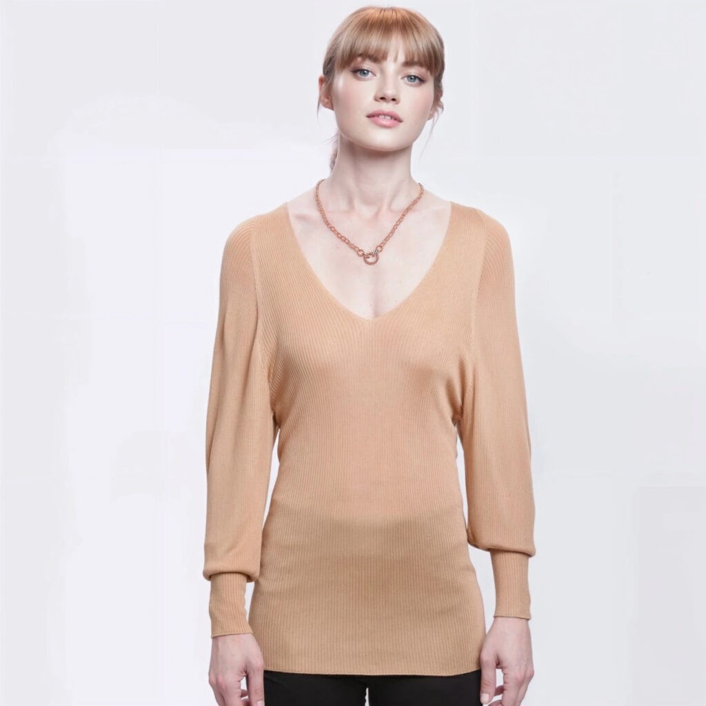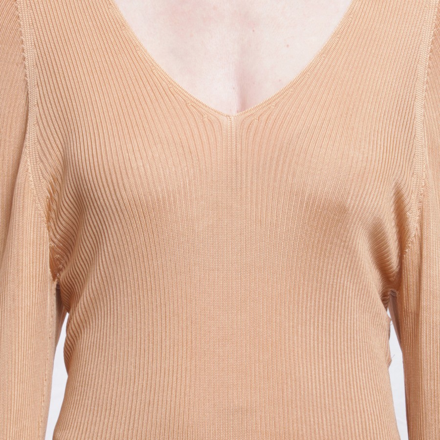 The design features a V-neckline that enhances the décolleté and a fine rib knit that ensures an impeccable fit that follows the lines of the body without constricting. The Made in Italy quality guarantees excellent durability and superior all-day comfort.