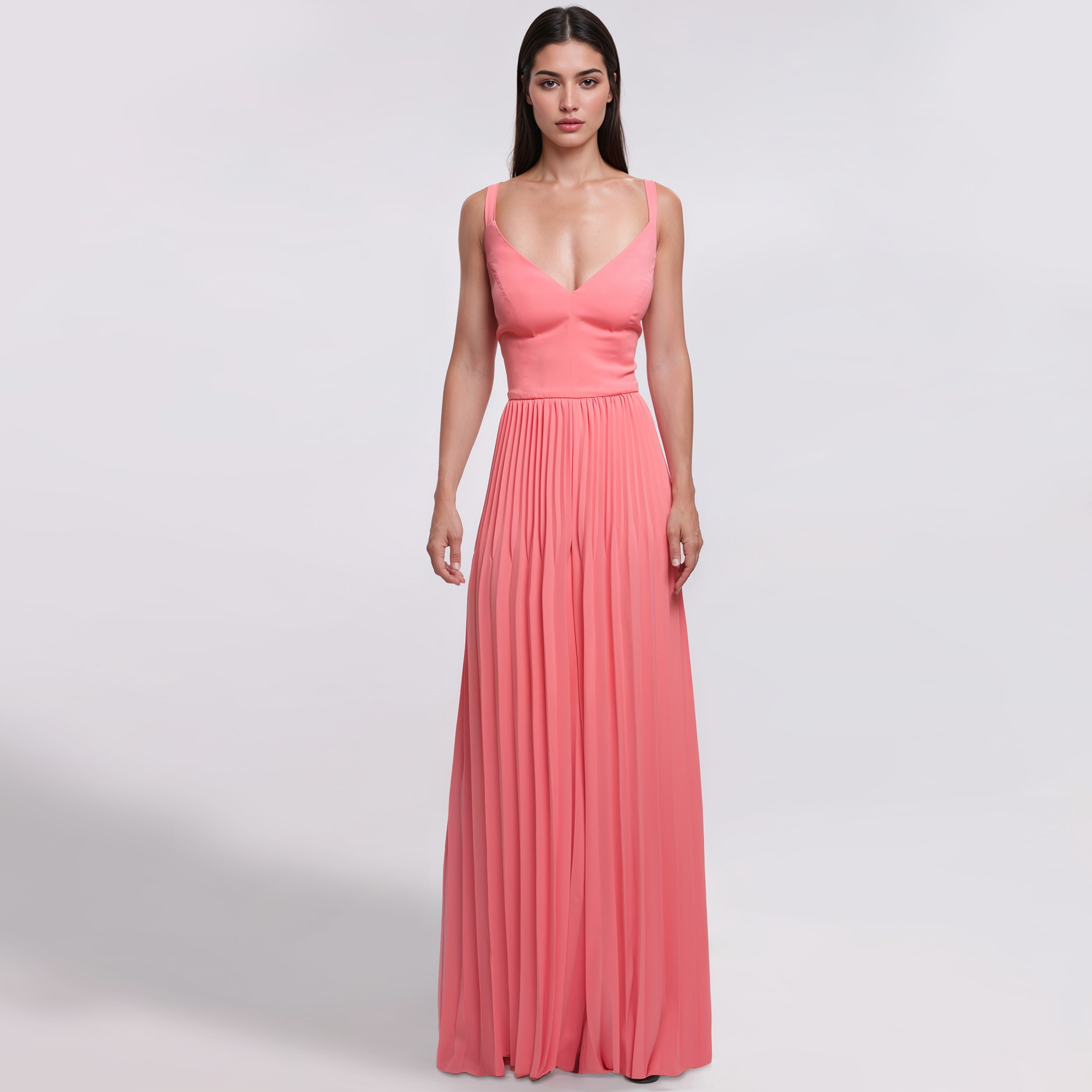 Details: Adjustable braided straps, corset back fastening, pleated palazzo leg.