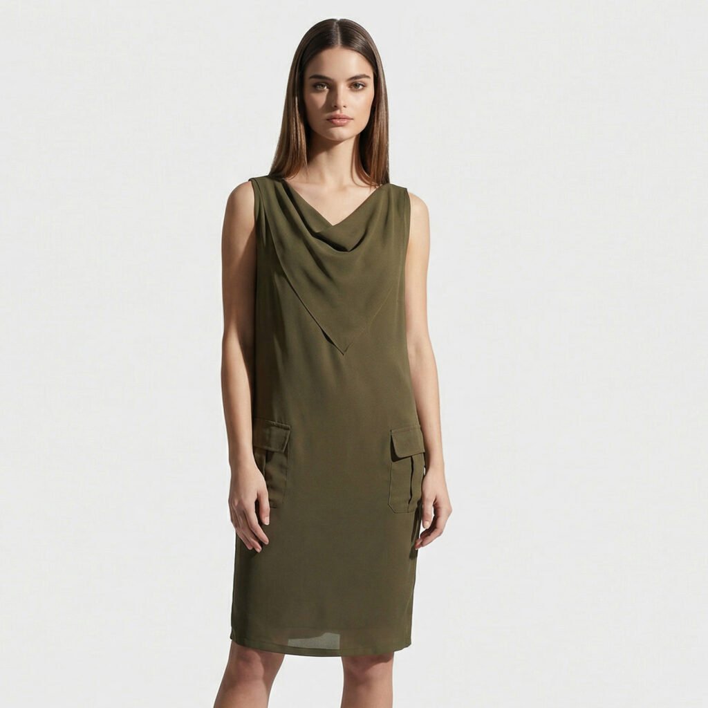 Thedark green silk woman dress Max Mara is an elegant and versatile model designed for those seeking comfort and style.
