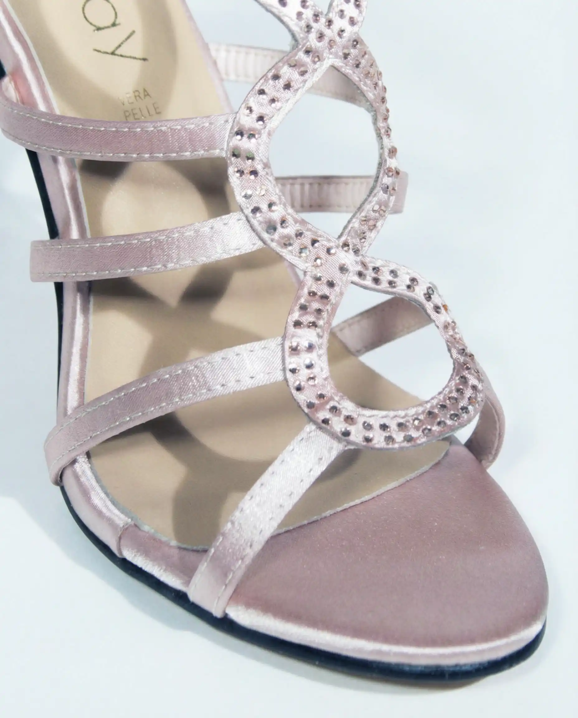 Pure light for your most important steps. These new Yamamay jewel sandals are the ultimate accessory for ceremonies and exclusive events. Made of a luxurious rose gold satin fabric and embellished with a shower of glitter and rhinestones, they offer a slender 11 heel and a genuine leather insole to combine comfort and absolute glamour.