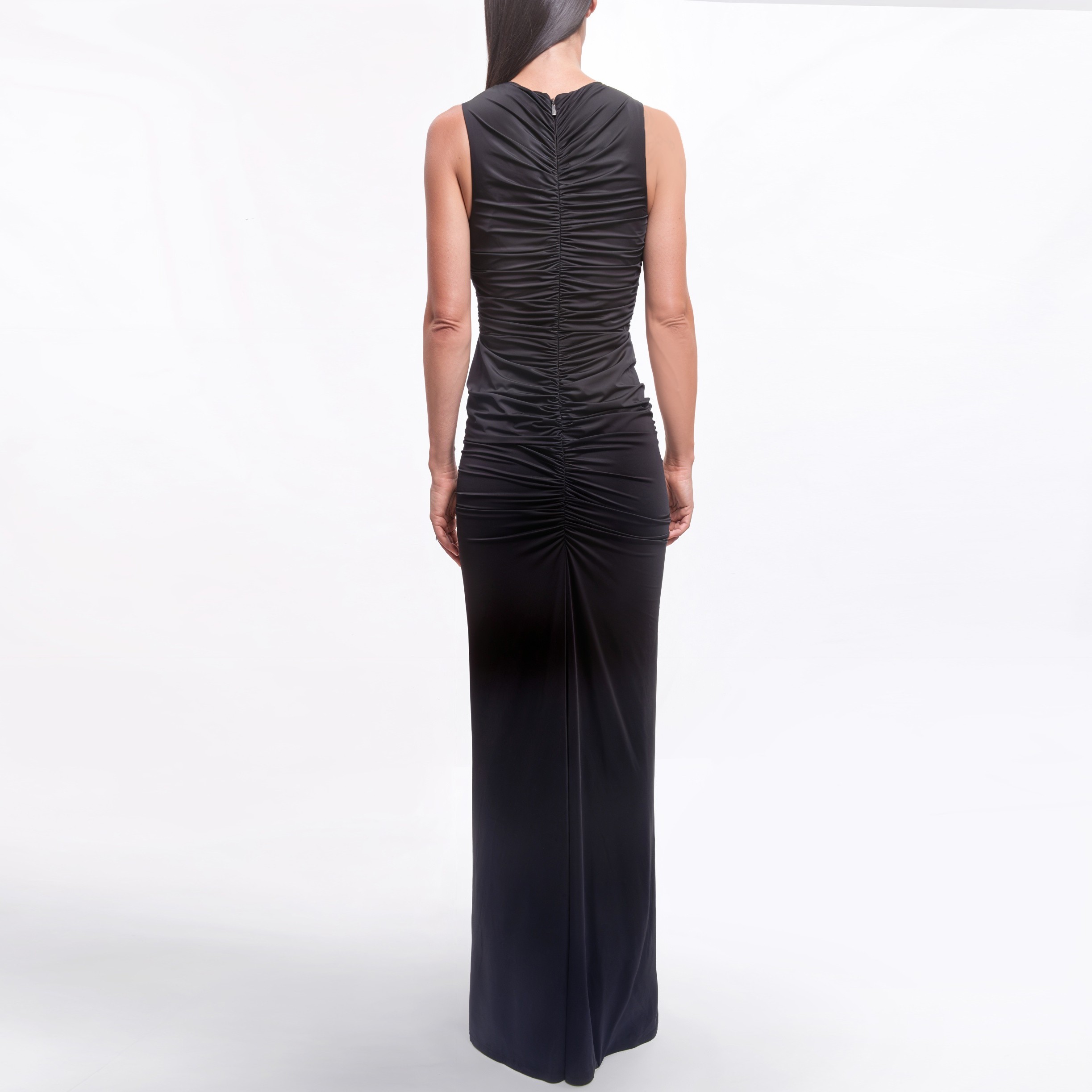 Elegante abito Marciano by Guess modello lungo Livvie in tessuto elasticizzato nero. Design sofisticato con drappeggi modellanti, zip posteriore e fodera interna. Lunghezza 158 cm. Taglia 44 IT (M), veste perfettamente anche taglie S 40 e 42 grazie alla fibra stretch.