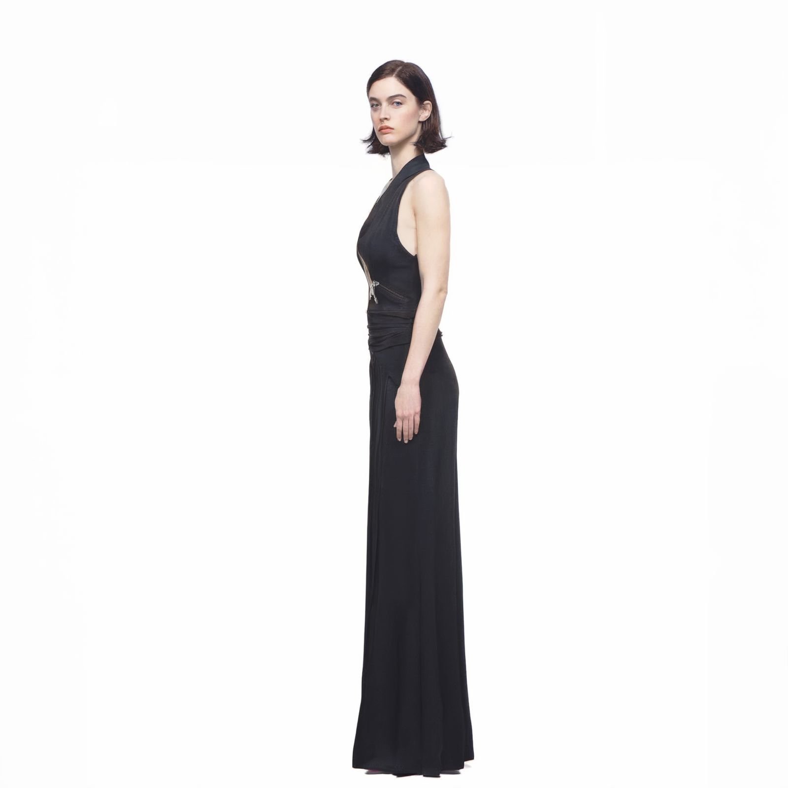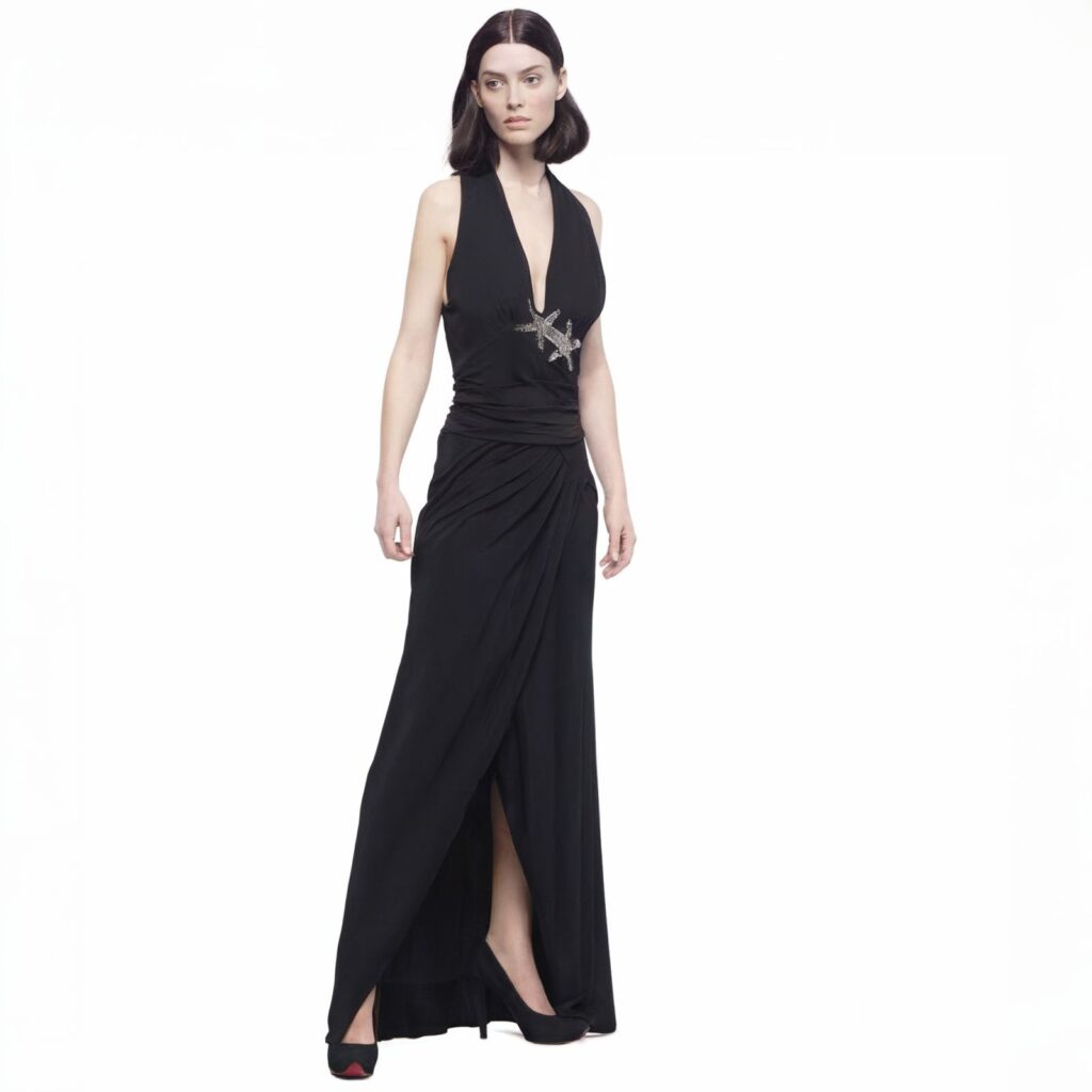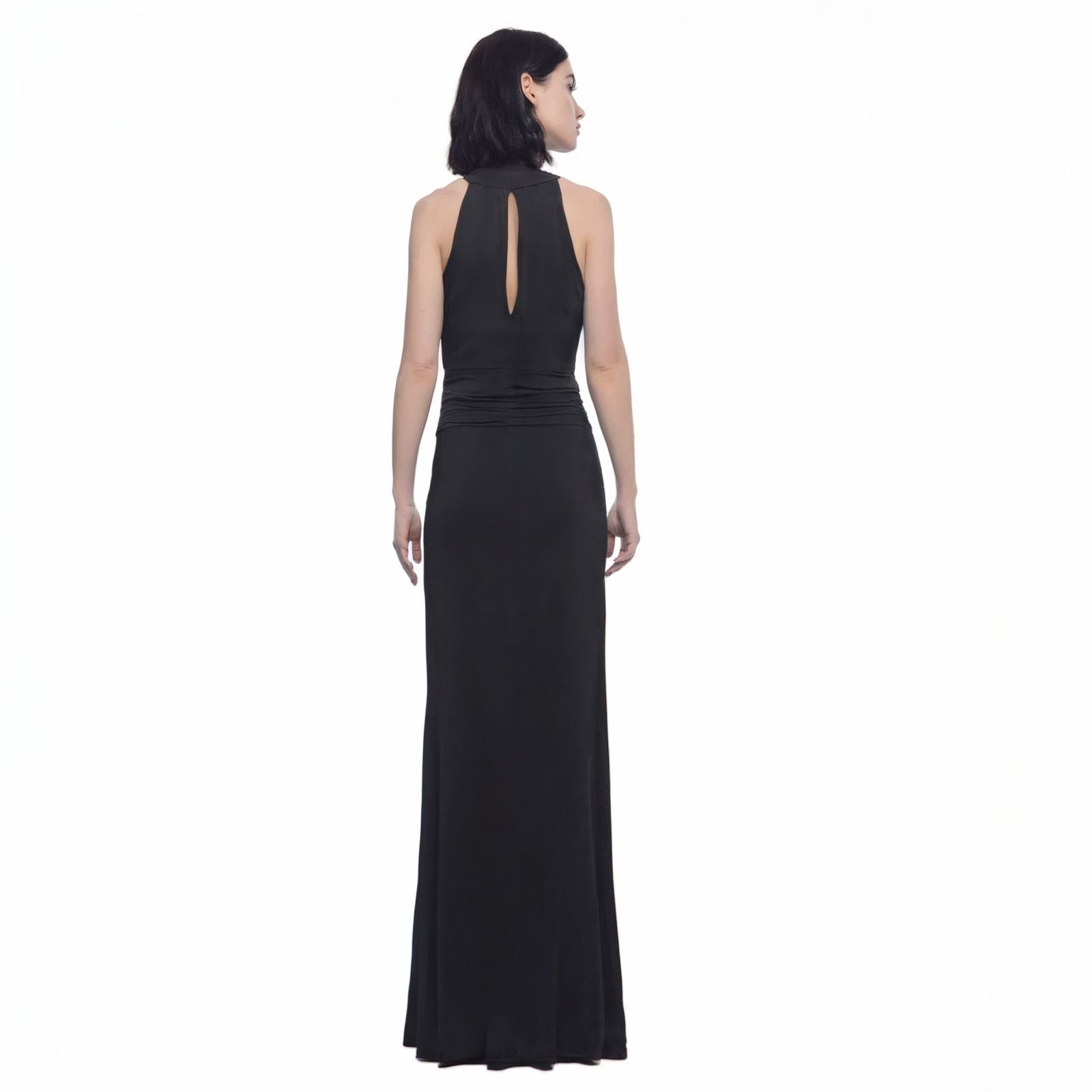 L’Anna Rachele Vestito Lungo Nero incarna la perfetta armonia tra comfort e stile sofisticato. La composizione in viscosa elasticizzata permette al capo di accompagnare le forme in modo naturale, mentre lo spacco frontale e l’apertura a goccia sul retro aggiungono un tocco di sensualità raffinata. Un abito versatile, perfetto per essere indossato in tutte le stagioni per eventi che richiedono un dress code impeccabile.
