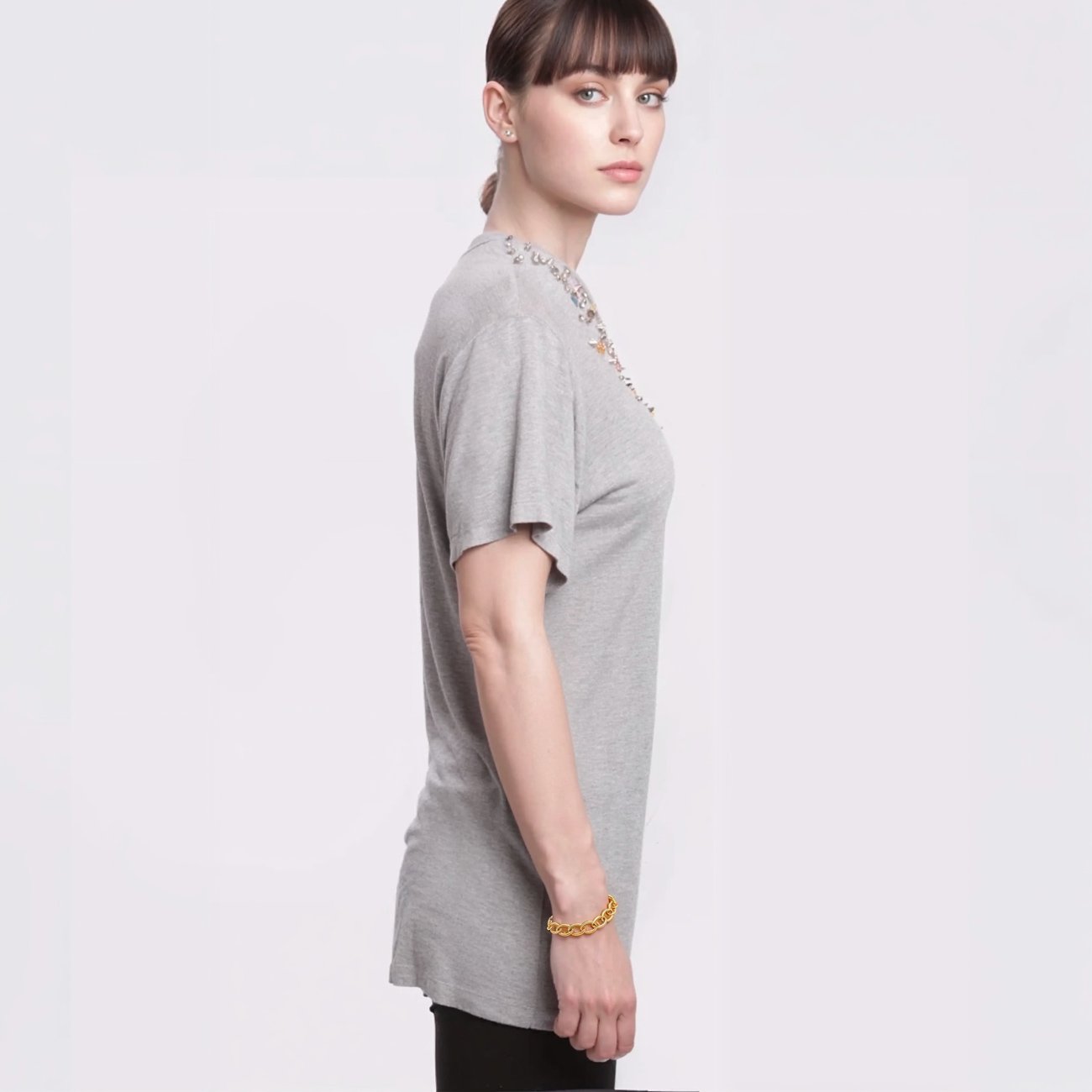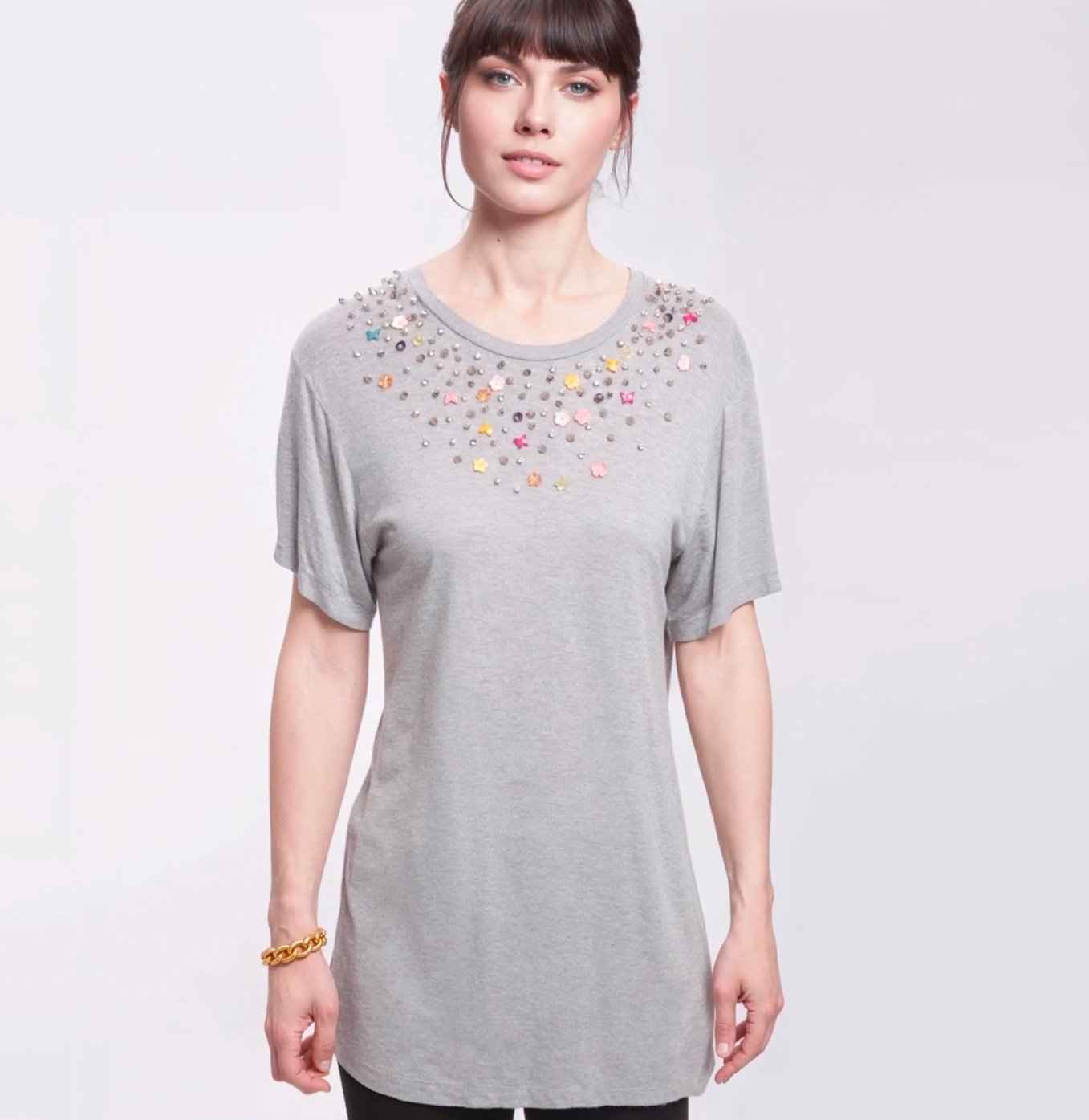 La t shirt donna Blugirl proposta in questa versione grigio perla unisce comfort, stile e dettagli decorativi tipici del brand.