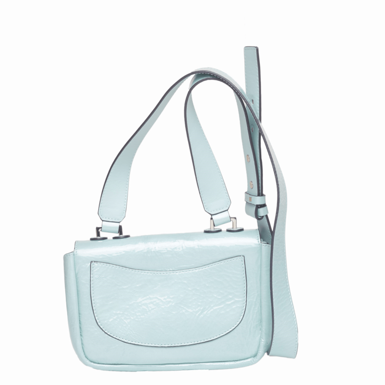 La chiusura frontale assicura praticità e sicurezza, mentre la tracolla regolabile consente di adattare la vestibilità alle diverse esigenze. Le dimensioni compatte rendono questa borsa a tracolla celeste perfetta per portare con sé l’essenziale con stile.