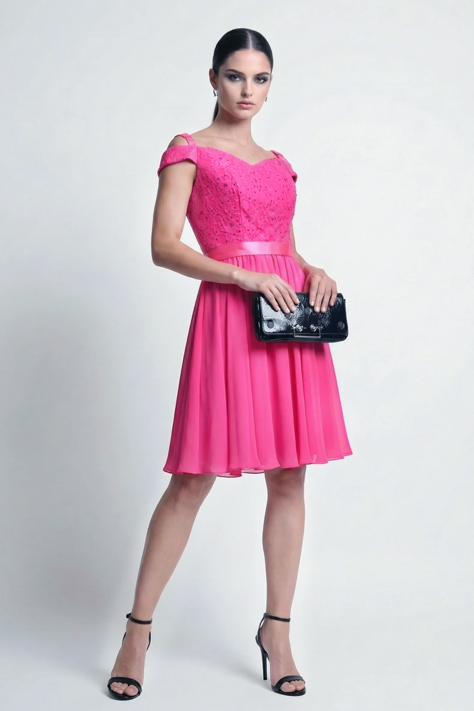 Cattura ogni riflesso con un’eleganza che incanta al primo sguardo. L’abito “Floral Jewel” di Elite è un inno alla raffinatezza: il fucsia intenso fa da tela a un prezioso ricamo floreale punteggiato di strass, creando un’armonia cromatica vibrante. Un pezzo studiato per chi desidera un’immagine sofisticata e senza tempo, capace di raccontare una storia di stile unica.