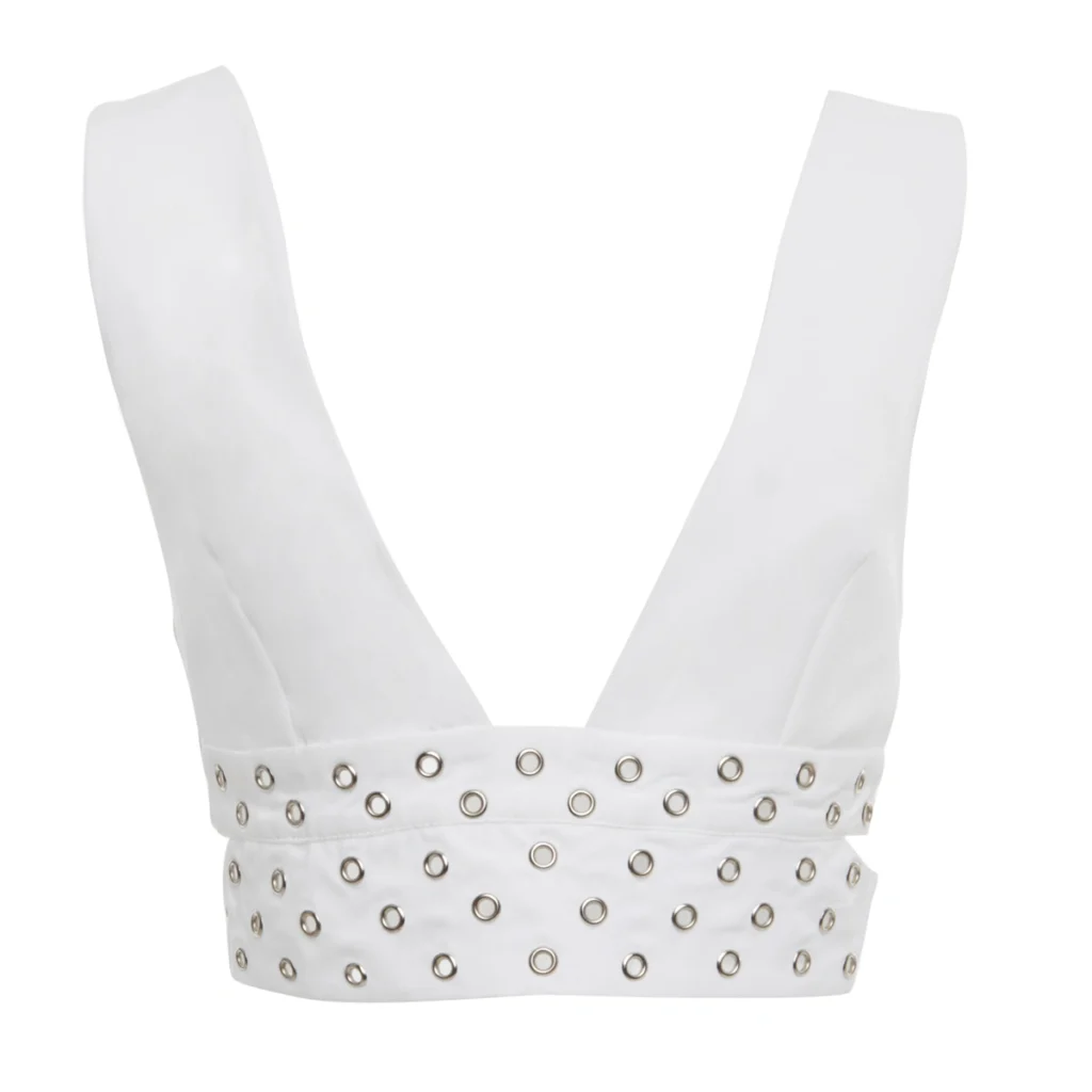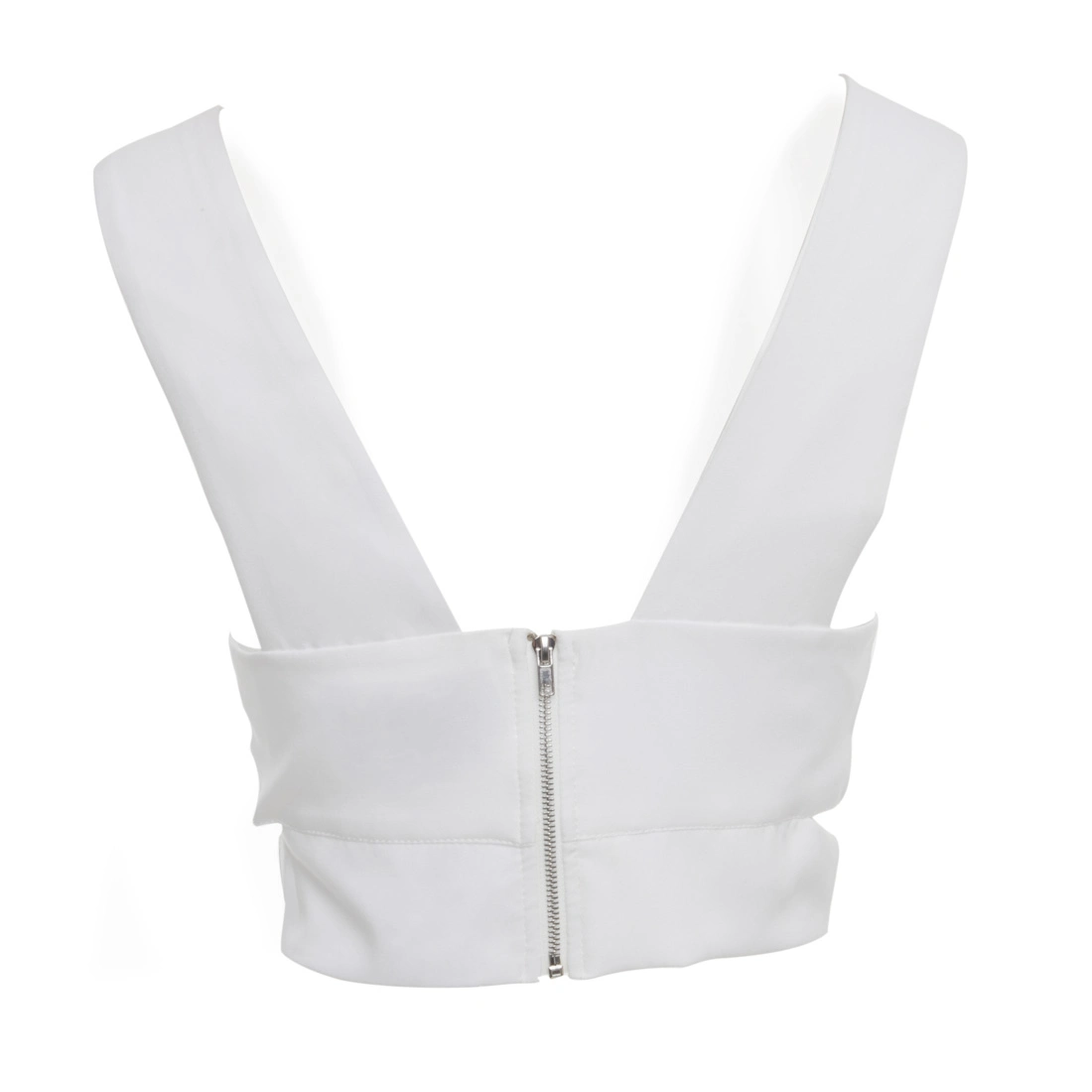 La chiusura con zip posteriore garantisce una vestibilità pratica e ordinata, mentre la lunghezza corta lo rende perfetto da abbinare a pantaloni a vita alta, gonne o blazer. Un top bralette donna bianco pensato per chi ama uno stile deciso e raffinato.