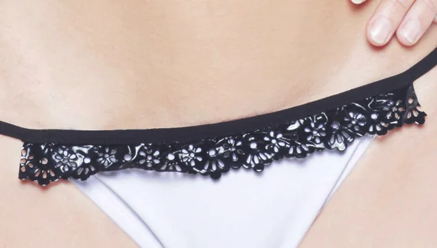 Dettagli Tecnici: Sostegno con ferretto, slip interamente foderato per una coprenza totale, decoro esclusivo sullo slip, lacci laterali regolabili.