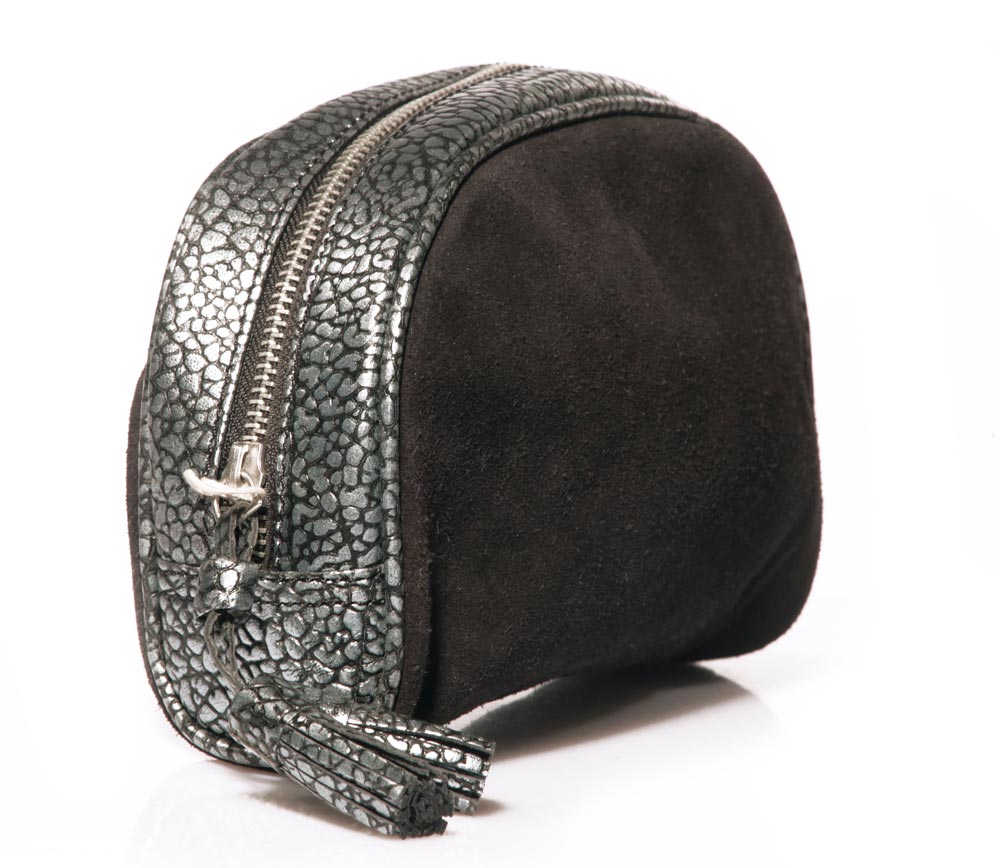 La Borsa a Mano Scamosciata Nera firmata Pieces è pensata per la donna che cerca un accessorio compatto ma di grande impatto visivo. Il design a mezzaluna, unito alla pregiata lavorazione in pelle scamosciata, conferisce a questa pochette un’estetica lussuosa e moderna al tempo stesso. Il corpo della borsa, nel nero più profondo, è incorniciato da un bordo con finitura testurizzata effetto rettile che aggiunge una nota di carattere al design minimalista.