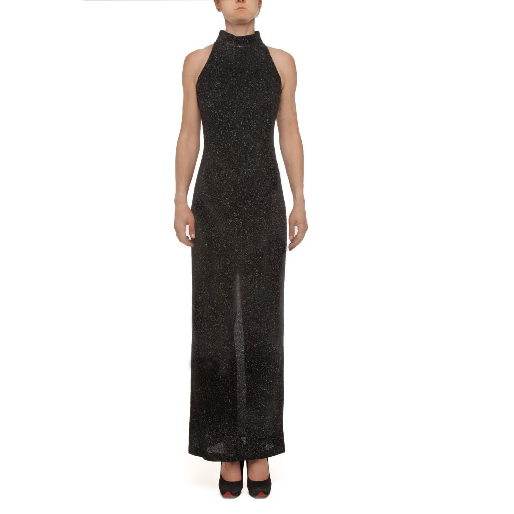 Il Real Vestito Donna Elegante da Sera in colore nero è l’essenza dell’eleganza senza tempo. La silhouette lunga e scivolata, realizzata in tessuto fluido, accarezza il corpo valorizzando la figura con discrezione. Il collo alto conferisce un tono regale, mentre l’assenza di maniche bilancia il design rendendolo perfetto per eventi di gala, cerimonie o serate di alto profilo.