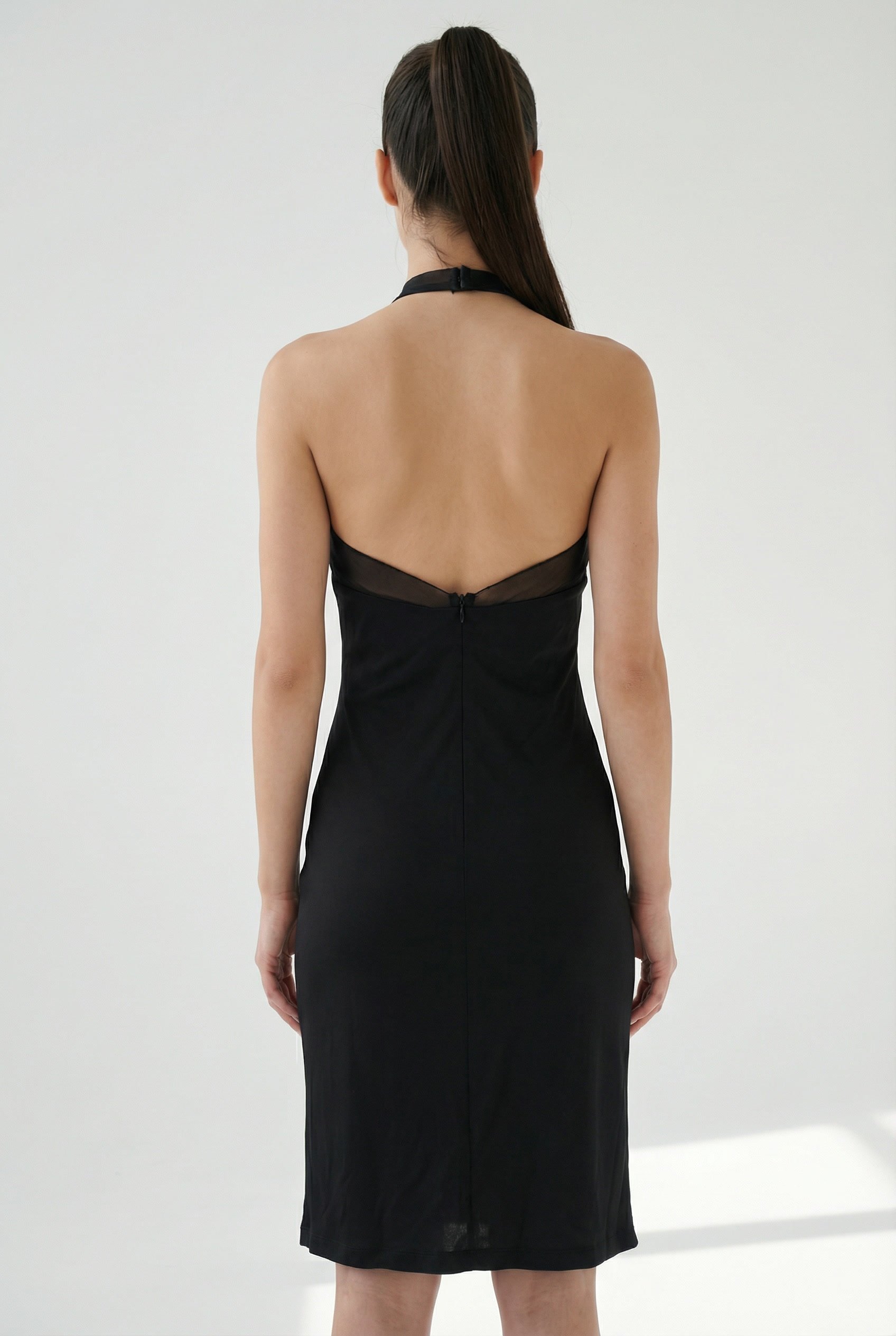 Design Audace: Taglio corto sopra al ginocchio con ampia scollatura posteriore per un effetto scenografico.