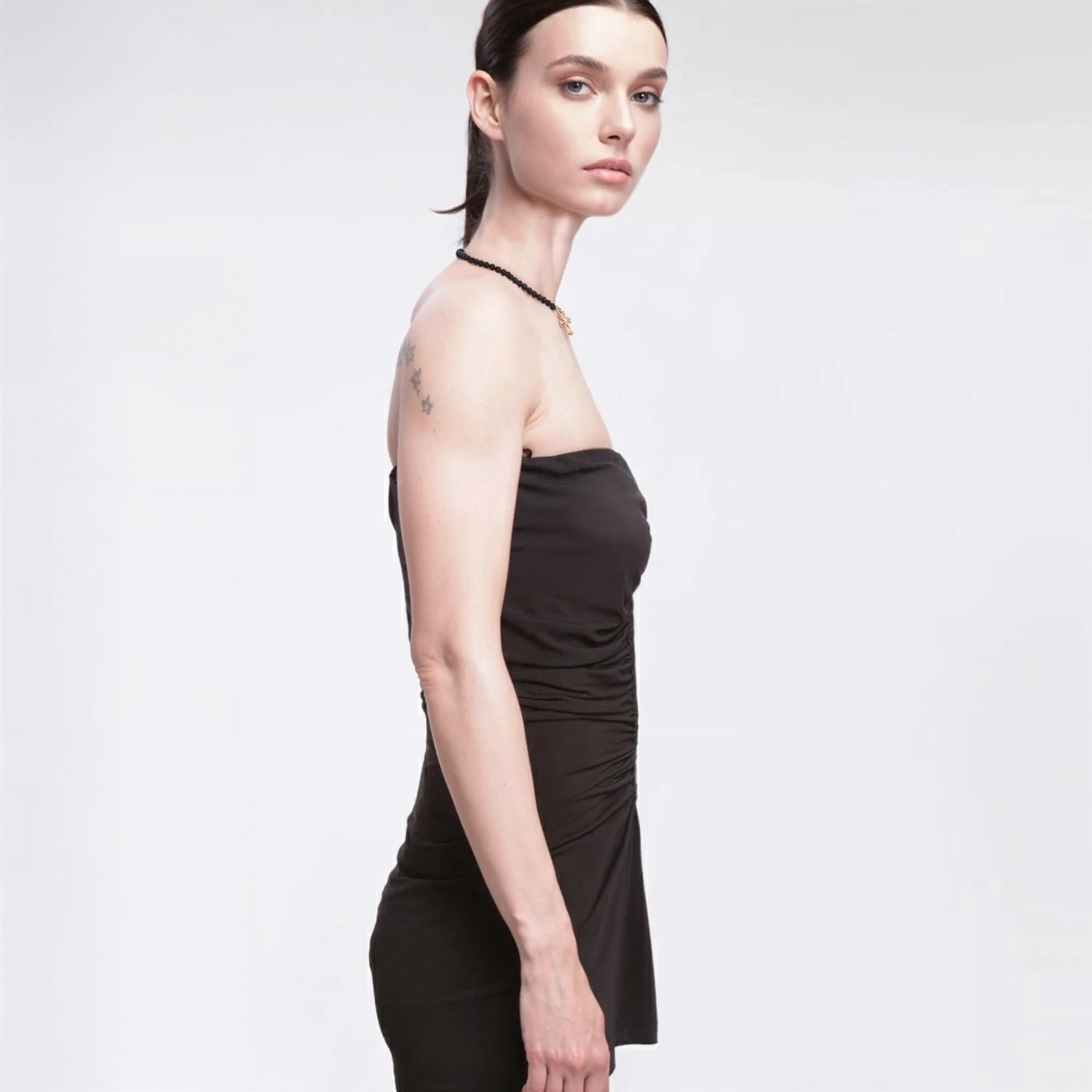 Top Roccobarocco donna nero senza spalline con dettaglio gioiello centrale, arricciature eleganti e tessuto morbido in viscosa elasticizzata. Taglia IT 42.