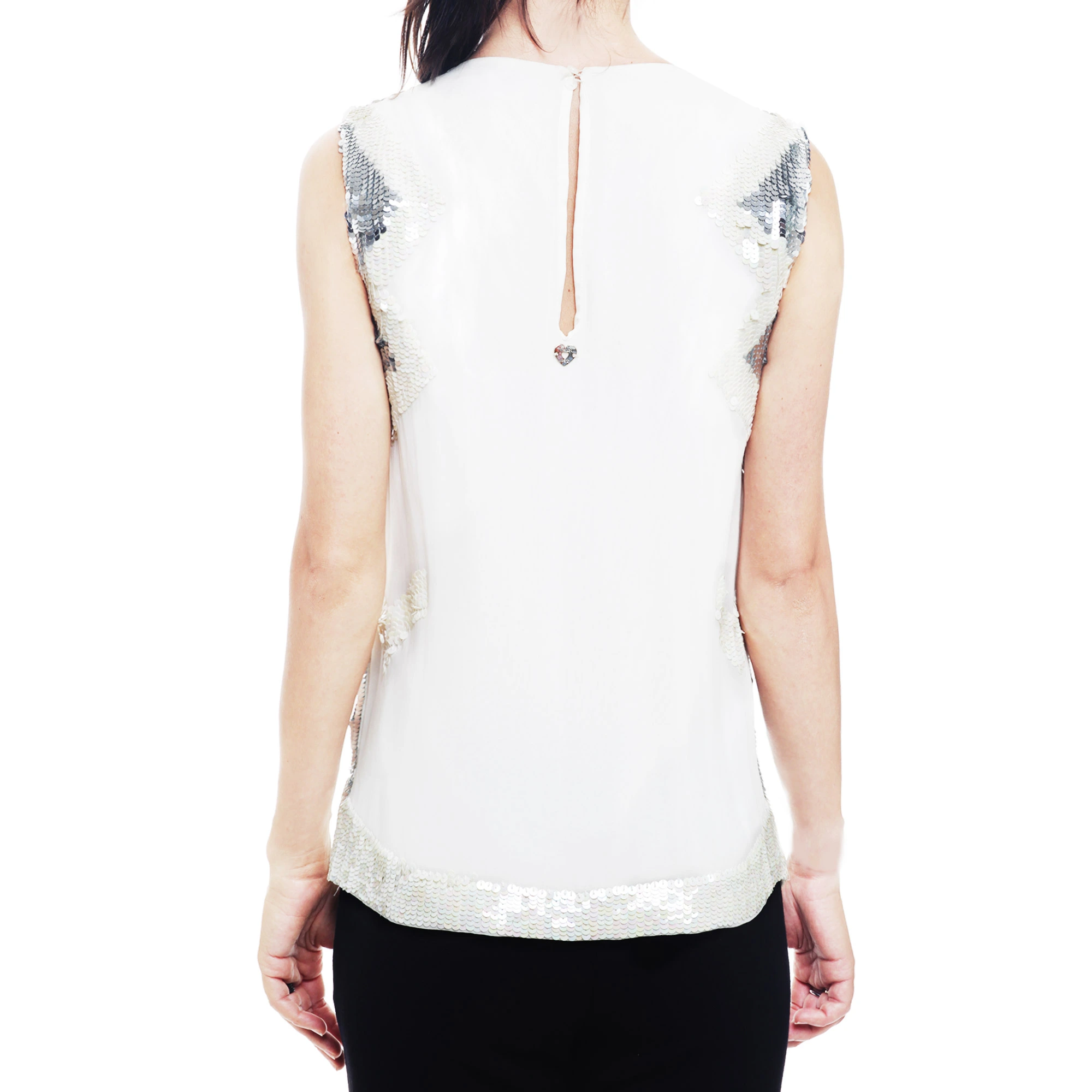 Top TWINSET senza maniche in viscosa con applicazioni di paillettes madreperla e argento. Elegante e luminoso.